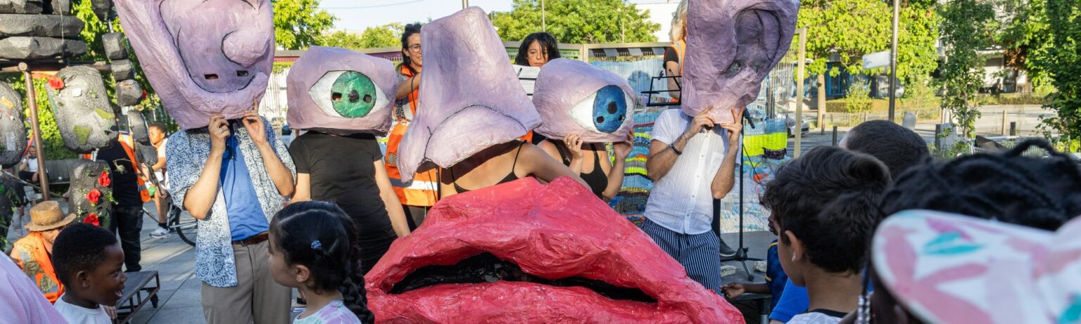 À La Courneuve, dans le cadre du projet de rénovation urbaine de la ZAC de la Tour, la compagnie La Zankà anime des ateliers avec les habitants autour de son projet « Les doux déplacements du dernier des géants », créant un lien entre art et transformation urbaine.
